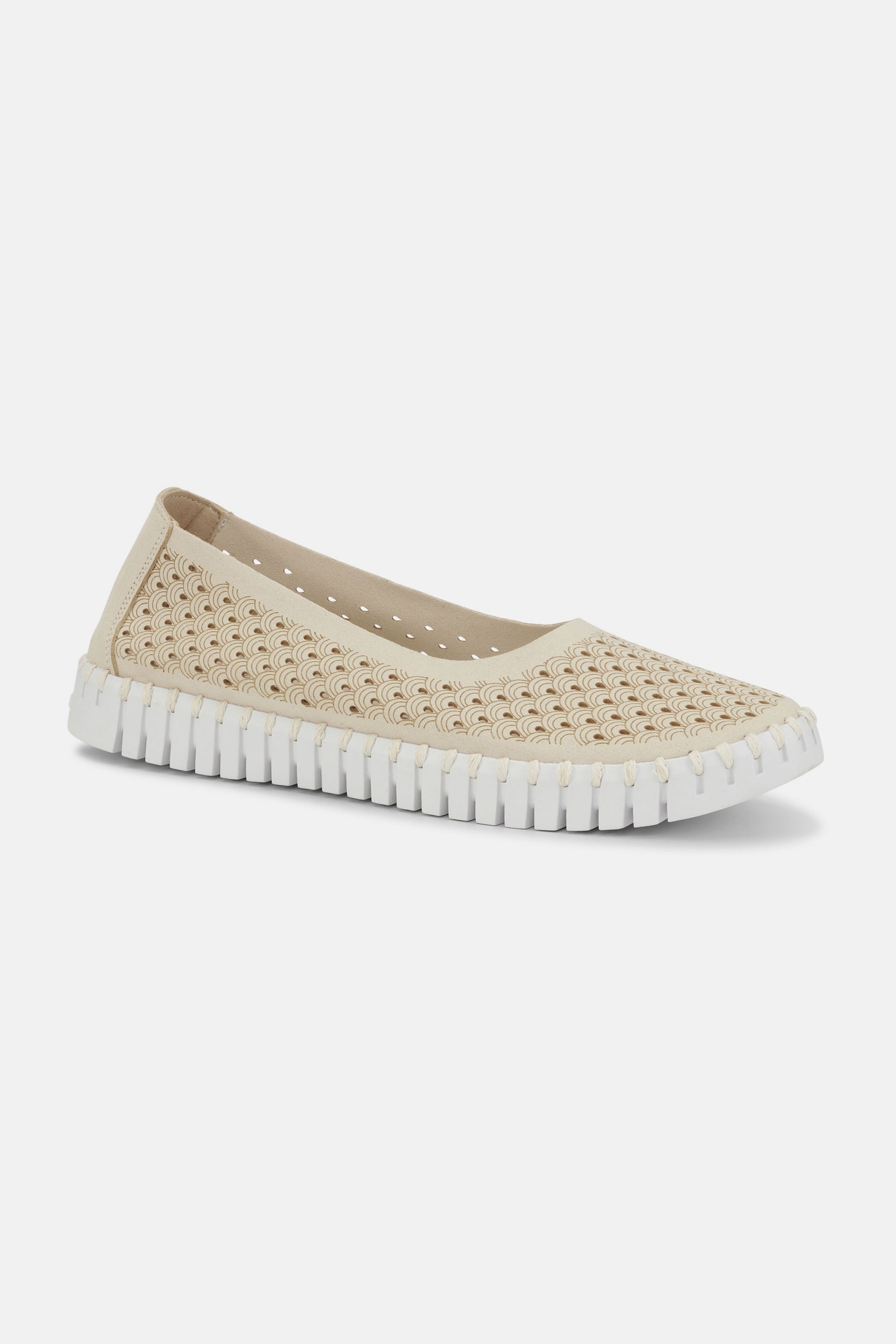 De iconische Tulip-schoen in een vrouwelijke ballerina-uitvoering. Gemaakt van gerecycled microvezel met een verfijnd laser-gesneden patroon, combineert deze schoen perfect stijl en design. De flexibele Tulip-zool is volledig gelijmde-vrij en gestikt met gerecycled garen. Binnenin zorgt een zachte, gewatteerde binnenzool voor extra comfort en ondersteuning. Een ideale keuze voor elke gelegenheid!