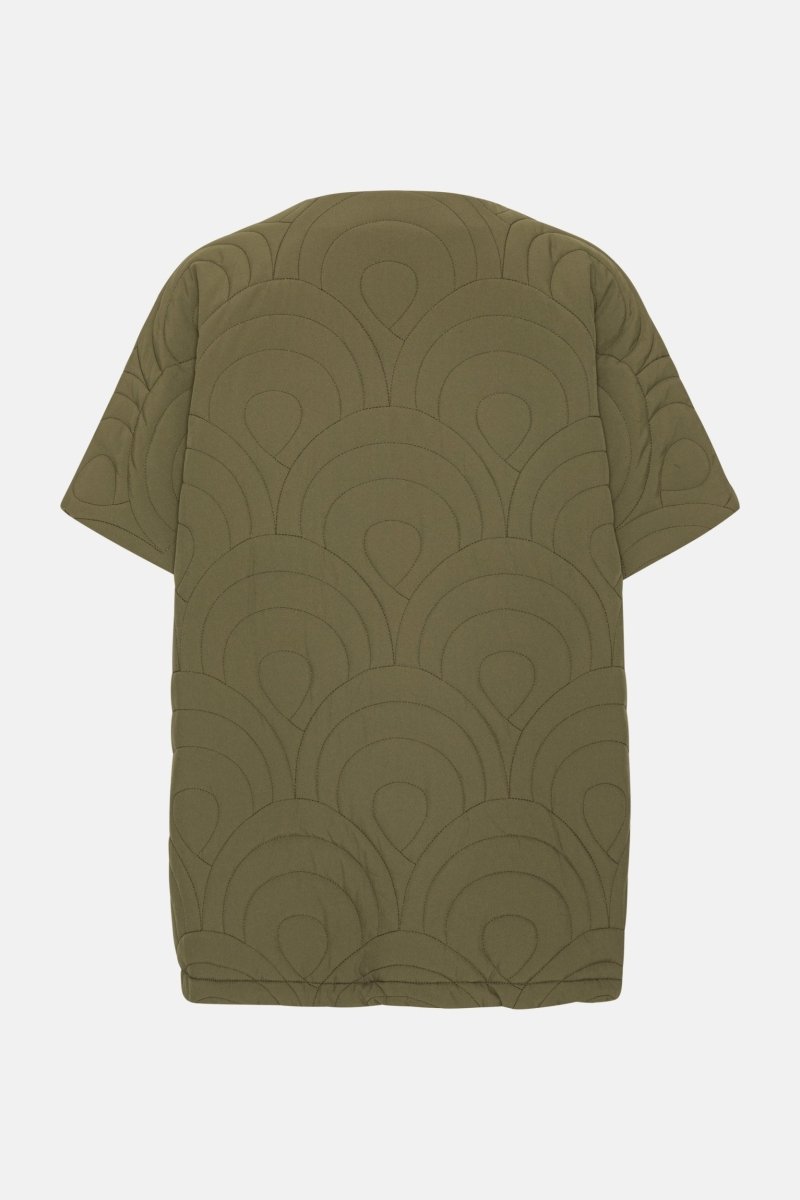 Ontdek deze stijlvolle bodywarmer, ontworpen met oog voor comfort en een moderne uitstraling. De bodywarmer heeft een klassieke ronde hals en zachte padding die zorgt voor aangename warmte zonder zwaar aan te voelen. De gestikte zijzakken bieden praktische opbergruimte en de verborgen drukknoopsluiting, netjes afgewerkt met stof, zorgt voor een strakke look. Dankzij de iets oversized pasvorm is dit model perfect om te dragen over andere lagen. Het exclusieve borduursel geeft de bodywarmer een unieke en verfijnde finishing touch.